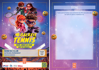 Personnalisez vos outils de communication (supports imprimables et supports digitaux) pour la campagne Galaxie tennis - super-héros :
